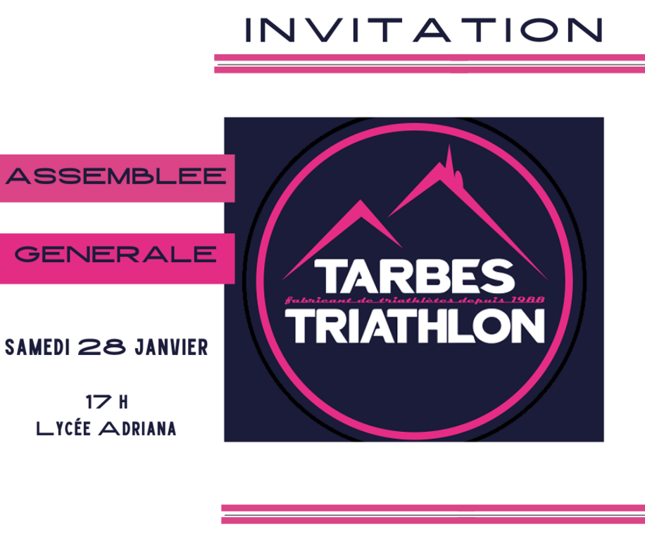 L'assemblée Générale 2022 de Tarbes triathlon aura lieu le 28 janvier 2023 à 17h.